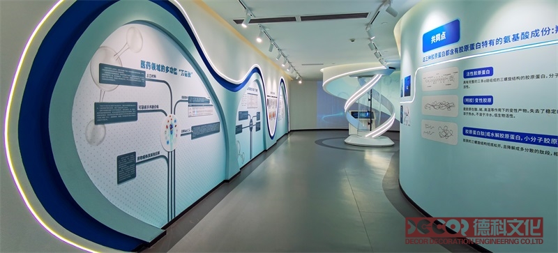 設(shè)計(jì)理念:膠原展覽館將圍繞“前沿科技”“民族產(chǎn)業(yè)”“美好生活”的主題概念,通過(guò)聲光電等形式,立體展現(xiàn)膠原蛋白的結(jié)構(gòu)功效與科技發(fā)展、核心成果與產(chǎn)業(yè)前景。