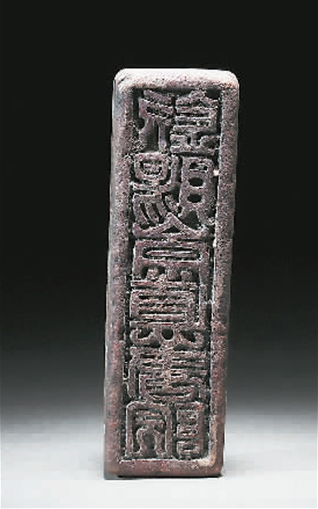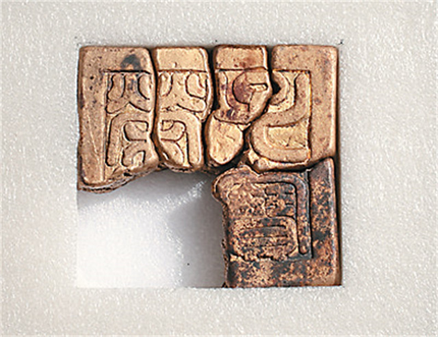 “欽賜崇德書院”銅印,表面鎏金,長方形印臺,龜形印鈕,印面篆書“欽賜崇德書院”6字。“崇德書院”為明代吉王所建,是王府內(nèi)講學、刻書的重要場所。吉府“崇德書院”本圖書,無論??薄婵?、用紙皆為當時翹楚,亦為后世所重,歷來被視為珍本。這枚吉府書院印的發(fā)現(xiàn),對研究明代文化教育,是非常珍貴的實物史料。