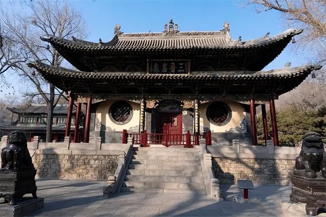 北部從文昌宮起,經(jīng)過(guò)東岳祠、關(guān)帝廟、三清洞、唐叔虞祠、朝陽(yáng)洞、老君洞、云陶洞、財(cái)神洞、待鳳軒、三臺(tái)閣、讀書臺(tái)、呂祖閣。這個(gè)組團(tuán)的建筑隨著背后所依的山勢(shì)層層疊疊,參差錯(cuò)落,由自然地形圍合了一處幽靜獨(dú)立的空間,使建筑空間與自然景觀融為一體,殿堂樓閣在山林植物的掩映中若隱若現(xiàn)、錯(cuò)綜排列,以崇樓高閣為最盛。北部建筑整體給人整齊統(tǒng)一,規(guī)則有序的感覺(jué),隨山勢(shì)而形成了統(tǒng)一而又變化的一系列空間,緊湊有致,井然有序。
